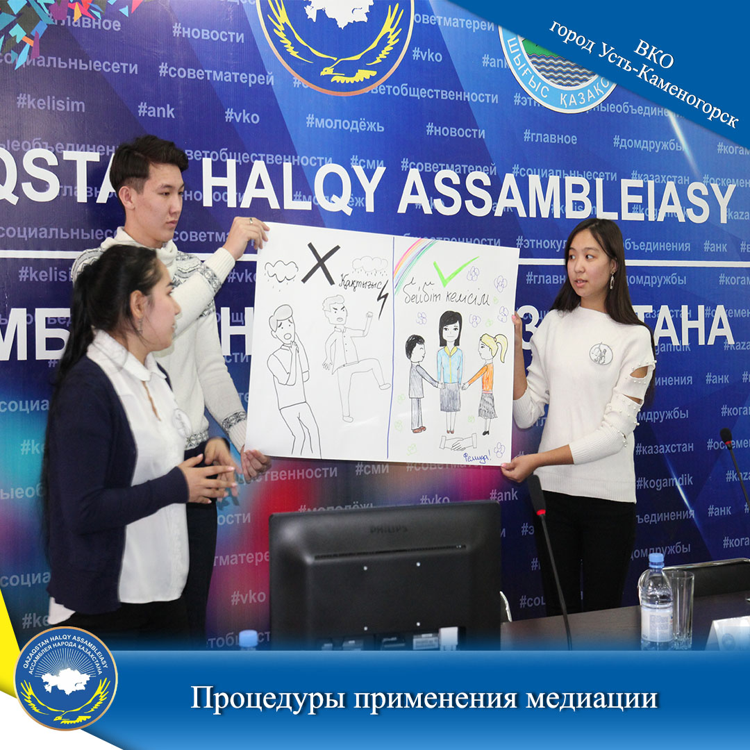 Достық үйі – Қоғамдық келісім орталығында палаталармен, медиация орталықтарымен және жоғары оқу орындарымен бірлесіп «Медиацияны қолдану рәсімдері» атты жастар арасында сайыс өтті.