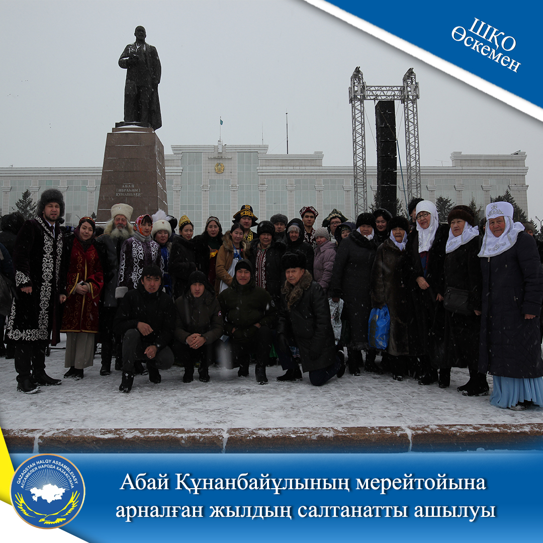 Өскемен қалалық мәдениет, ішкі саясат және тілдерді дамыту бөлімінің басшысы Қалқаман Сарин Абай Құнанбайұлының мерейтойына арналған жылды ресми түрде ашып, құттықтау тілегін айтты. Жиналғандар Абай ескерткішіне гүл шоқтарын қойып, дара ақынның рухына тағзым етті.