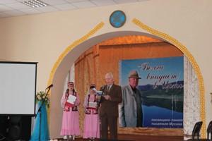 Цель мероприятия: закрепление навыков речевой практики татарского языка, знаний культурных традиций народа, духовно-нравственное, интернациональное воспитание молодежи, укрепление казахстанского патриотизма.К мероприятию сцена Областного Дома дружбы была прекрасно украшена цветами, был развешан баннер с портретным изображением М.Ш. Мусина на тему урока «Волга впадает в Иртыш», справа авансцены была оформлена книжная выставка произведений М.Ш. Мусина.Духовными наставниками человека, стремящегося к свету, нравственной чистоте, просвещению были и остаются представители татарской литературы. В этом же ряду замечательных людей находится имя нашего земляка, известного писателя и журналиста М.Ш. Мусина. Открытый урок посвящался памяти неординарного человека и самобытного, мудрого писателя, честного и проницательного журналиста, единственного на Востоке представителя татарской диаспоры, ставшего известным писателем.М.Ш. Мусин родился в ауле Нугуманово Большенарымского района. 17-летним юношей будущий писатель был призван в армию, воевал в войсках 1-го Белорусского фронта, в Манчжурии, на Дальнем Востоке, служил в северной Корее. По возращении с военной службы жил на Аблакетке. Из имущества имел самодельный деревянный чемодан, наполовину заполненный рукописями. В послевоенные годы М.Ш. Мусин работал сначала учителем, преподавал русский язык в Жулдузской казахской школе, а затем казахский язык в русской Солоновской школе. Надо полагать, что учителем молодой Менгали был тоже неординарным и талантливым. Этому способствовали прекрасное знание двух языков, казахского и русского и его литературный дар.М.Ш. Мусин – журналист с 60-летним стажем, член Союза журналистов СССР. Он автор публикаций на страницах многих центральных и региональных газет и журналов, таких как «Огонек», «Жулдыз», «Ак Ертис», «Восток», «Простор», международного журнала «Феникс».М.Ш. Мусин сотрудничал с республиканскими газетами «Коммунизм туы», «Лениншіл жас», работал в районной газете «Сталинский путь», затем его перевели в областную газету «Знамя коммунизма».Помимо журналистской работы М.Ш. Мусин известен своим читателям, как яркий и самобытный писатель. Его произведения – это хроника переломных, героических, подчас трагических событий из недавнего прошлого нашего края. Красной нитью всех его сочинений пронизывает тема дружбы разных национальностей.В 1964 г. выходит первая книга автора «Люди щедрого сердца», затем выходит книга «Любовь твоя и боль». Всего им было написано 10 книг.Писателю близки две темы: тема войны и тема репрессий. Трагические события 30-х годов всегда присутствуют в его творчестве. Об этом повествуют его произведения «Тінекте туншыккандар» (Унесенные в небытие), «Птица Феникс врага народа». Книги на тему войны: «С катонских гор, с берегов Нарыма», «От Толагая до Сарыбеля». В них рассказывается о доле вклада в Победу нашими земляками.В 2007 г. вышла замечательная книга «Дети Каратая».В ходе мероприятия своими воспоминаниями о писателе поделился член Ассамблеи народа Казахстана Л.Б. Шик, а также сотрудник областного архива И. Дурова. В мероприятии приняли участие Марвия Шарифовна и дочь Гульнар.Также была представлена сценка встречи невестки в доме жениха. Далее был представлен концерт татарского этнокультурного объединения.Мероприят